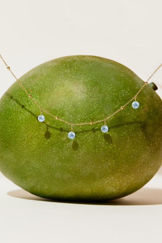 Die Liabelle-Kette: mit hellblauen Topasen und filigranen Details aus 18K Gold